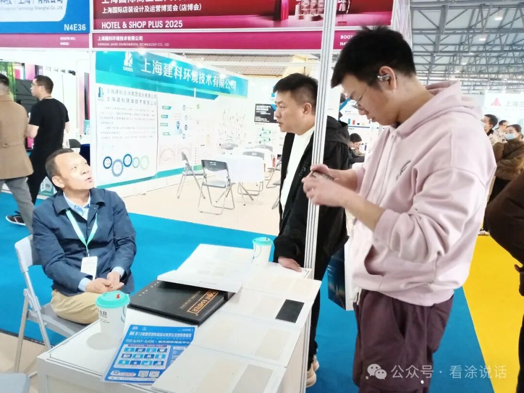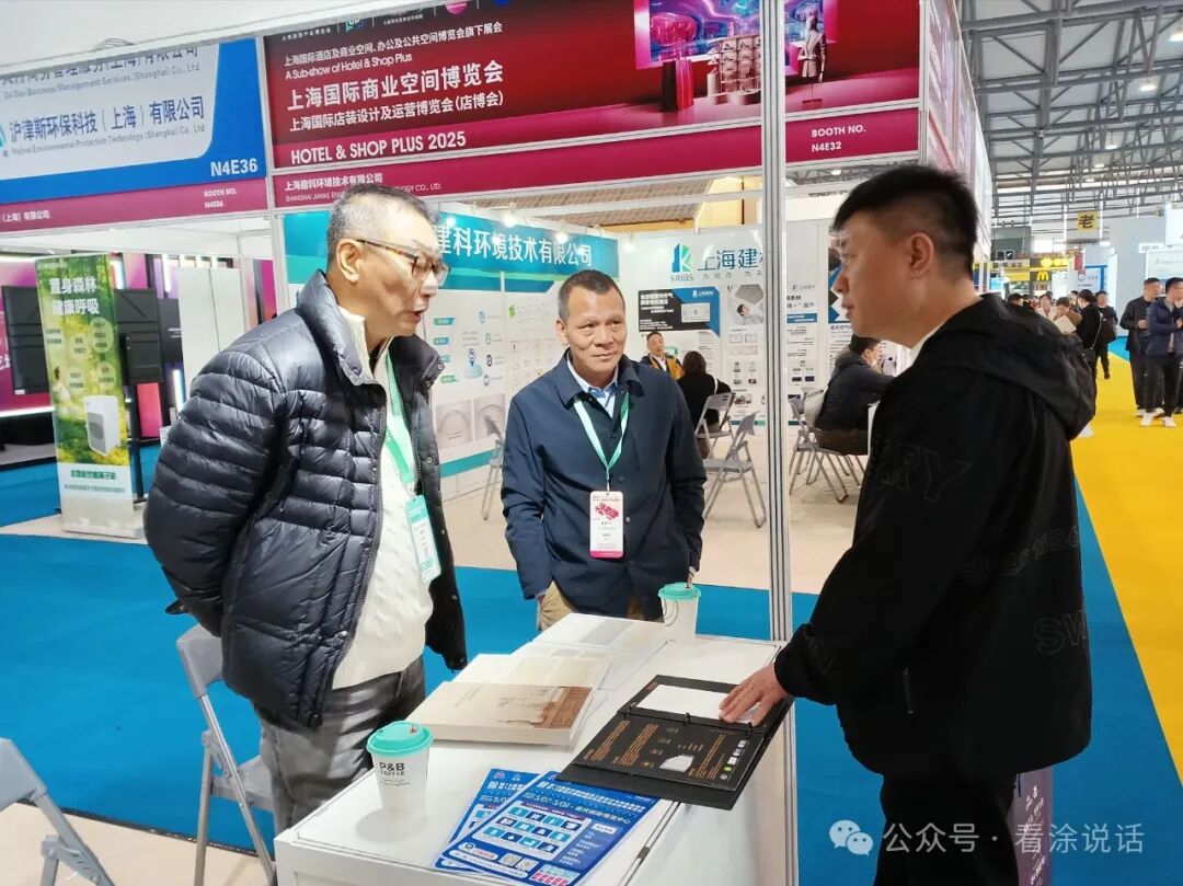 而好不容易跋山涉水飞到上海的顺德涂料商会秘书长张梦东,受邀参加展会,本来想找参展商“老熟人”好好聊聊广州建博会第三届艺术涂料节的事,哪成想,一不小心就成了接待客商咨询的“小前台”。