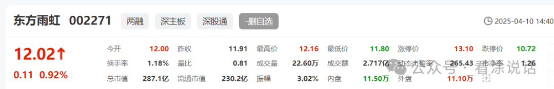资本市场用脚投票:截至2025年4月10日,东方雨虹动态市盈率265.43,仍比三棵树50.65高出5倍,这或许是对技术储备的期待,也可能成为东方雨虹最后的尊严防线。